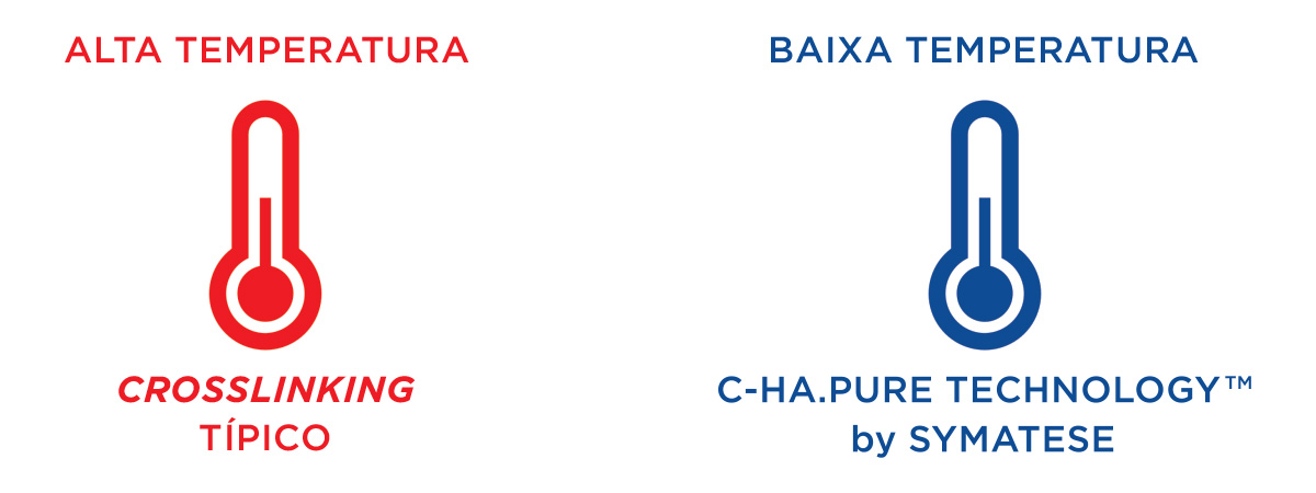 C-HA PURE TECHNOLOGY by Symatese™ é um processo exclusivo de reticulação com temperatura FRIA, mais suave e que requer menos BDDE.